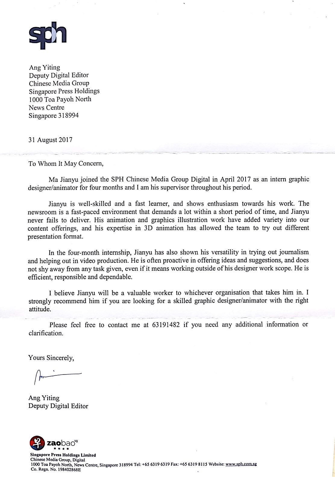 I do appreciate everything that I have experienced working as an intern. I am honoured that our prime minister Mr Lee Hsien Loong shared some of my works on his social media a few times.